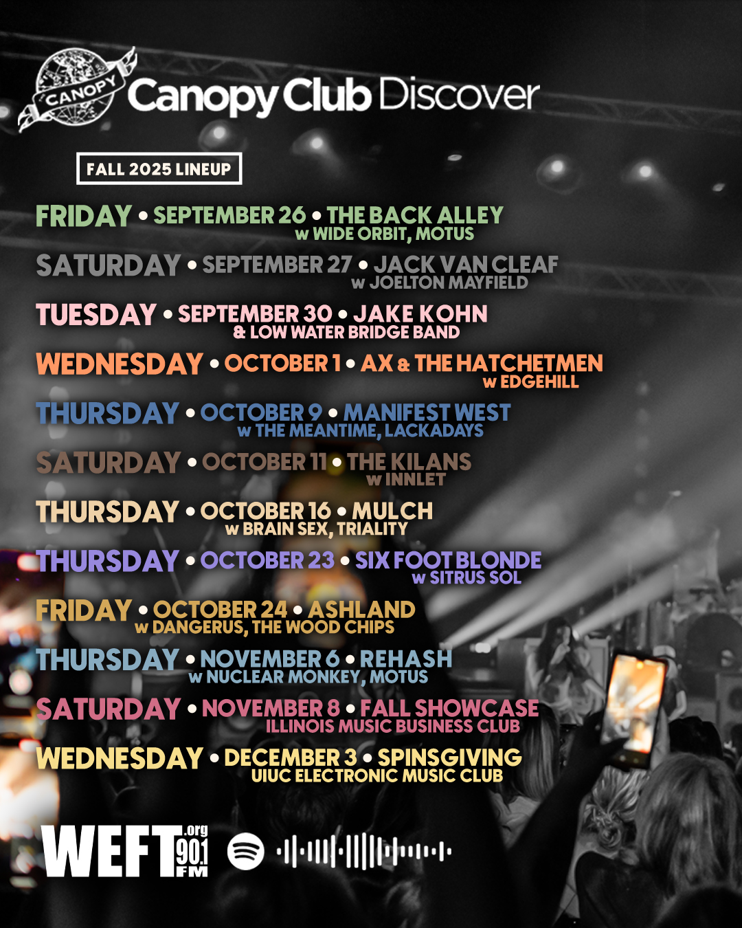 📅 Join us under the Canopy all semester as we highlight both local and touring artists.