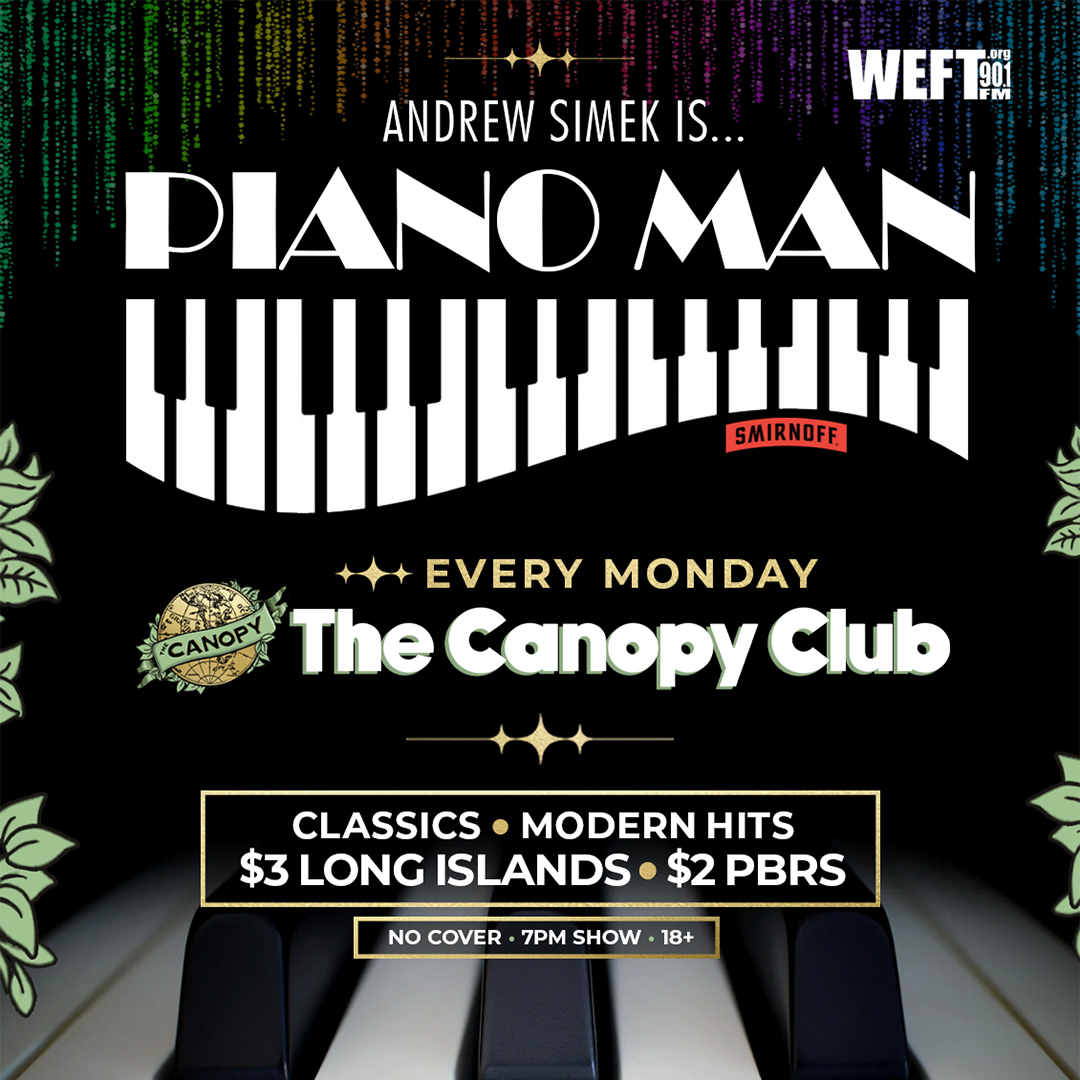 Join the legacy every Monday night to come sing and dance under the Canopy as the Piano Man plays classics and modern hits for you to kick off your work with a Monday night sing-a-long.